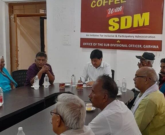 गढ़वा:– सदर एसडीएम संजय कुमार की ओर से चलाए जा रहे नियमित साप्ताहिक कार्यक्रम “कॉफी विद एसडीएम” में आज अनुमंडल क्षेत्र के ऐसे सैनिकों के परिजनों को आमंत्रित किया गया था जो वर्तमान में देश की रक्षा सेवा में बॉर्डर पर या दुर्गम क्षेत्रों में तैनात हैं। आज के इस कार्यक्रम में अनुमंडल क्षेत्र के कुछ ऐसे भूतपूर्व सैनिक भी मौजूद रहे जिन्होंने 1971 के युद्ध या कारगिल के युद्ध में भाग लिया था। इस कॉफी संवाद कार्यक्रम के दौरान सहभागियों ने न केवल अपनी निजी समस्याएं रखीं बल्कि गढवा शहर और जिला की बेहतरी के लिए कई सुझाव भी दिये।