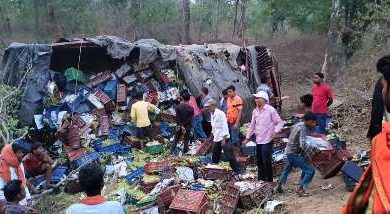 महाराष्ट्र आ रहे अंगूर से लदा ट्रक अनियंत्रित होकर गिरा गिरा गद्दा में बाल बाल बचे लोग।